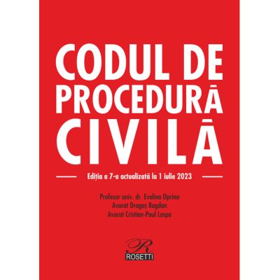 Codul de procedura civila editia iulie 2023 include - decizia ICCJ RIL nr. 1 2023 publicata in M. Of. nr. 337 din 21 aprilie 2023 - decizia ICCJ RIL nr. 10 2023 Comunicat din 19 iunie 2023 - decizia ICCJ RIL nr. 11 2023 Comunicat din 19 iunie 2023 - decizia ICCJ RIL nr. 4 2023 publicata in M. Of. nr. 575 din 26 iunie 2023 - decizia ICCJ RIL nr. 6 2023 publicata in M. Of. nr. 597 din 30 iunie 2023 In anexa este inclusa Legea nr. 554 2004 a contenciosului administrativ actualizata prin - Legea nr. 84 2023 publicata in M. Of. nr. 294 din 7 aprilie 2023 rectificata in M. Of. nr. 362 din 27 aprilie 2023 Rectificarea nr. 84 2023 - Legea nr. 102 2023 publicata in M. Of. nr. 322 din 18 aprilie 2023 - decizia ICCJ RIL nr. 3 2023 publicata in M. Of. nr. 542 din 16 iunie 2023 - decizia ICCJ HP nr. 20 2023 publicata in M. Of. nr. 597 din 27 iunie 2023Specificatii