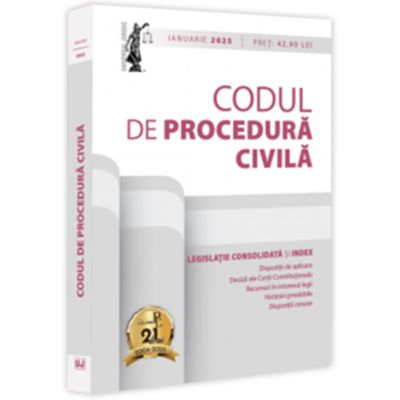 Editia a 22-a (revizuita) a lucrarii, Codul de procedura civila: ianuarie 2025, tiparita pe hartie alba de calitate superioara si ingrijita de prof. univ. dr. Dan Lupascu, contine textul Codului de procedura civila actualizat, imbogatit cu dispozitii de aplicare, decizii ale Curtii Constitutionale, recursuri in interesul legii, hotarari prealabile, taxe judiciare de timbru (extrase din O. U. G. nr. 80/2013, cu recentele modificari), numeroase dispozitii conexe si referinte legislative deosebit de utile.