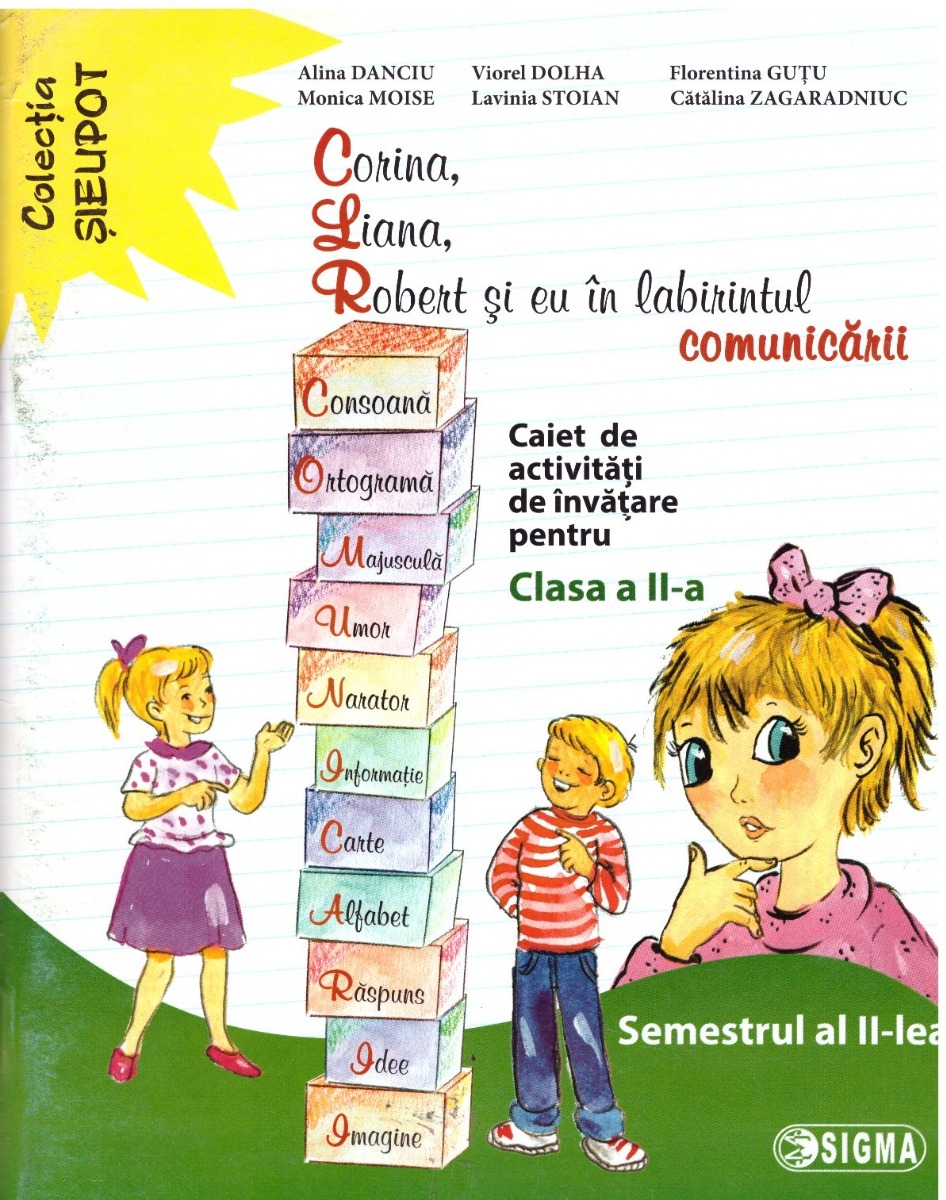 Corina, Liana, Robert si eu in labirintul comunicarii este un caiet de activitati de invatare pentru clasa a II-a. Cu ajutorul acestuia elevii de clasa a II-a, profesorii pentru invatamantul primar care predau la clasa a II-a sau parintii elevilor de clasa a II-a au posibilitatea sa lucreze suplimentar cu cei mici sau sa verifice nivelul de pregatire al copilului in limitele programei. Corina, Liana, Robert si eu in labirintul comunicarii reprezinta un instrument util in predarea-invatarea la clasa, accesibil invatamantului de masa, realist, cu texte noi si vechi, literare si nonliterare, adaptate varstei si interesului copiilor, aplicatii diverse concepute de la simplu la complex, cu multiple fise de evaluare cu metode clasice si moderne.