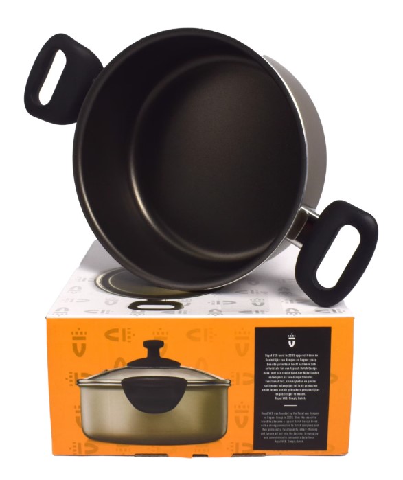 Tigaile si oalele Royal VKB Olandeze se caracterizeaza prin functionalitate si imagini fermecatoare. Prezentat in bej, are un maner ergonomic cu atingere rece, care este convenabil de utilizat. Caserola este realizata din aluminiu de calitate superioara, acoperita cu suprafata antiaderenta din teflon, care nu contine substante nocive pentru sanatate. Folosit pe toate tipurile de aragaz, cu exceptia celor cu inductie. Usor de spalat atat manual cat si cu masina de spalat vase.