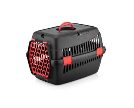 Cusca transport neagra cu usa rosie 49x35x32.5cm, 4 DOG DELUXE