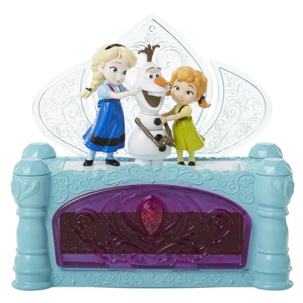 Magia Disney Frozen vine sub forma unei cutiute muzicale cu cele mai interesante si populare piese din animatia care a devenit rapid indragita de copiii din intreaga lume Alaturi de Anna si de Elsa cele doua surori atat de diferite vine si Olaf omul de zapada care topeste inimile tuturor celor care fac cunostinta cu simpaticul personaj Cutiuta muzicala poate fi folosita si ca loc in care fetita dumneavoastra isi poate depozita accesoriile. Let it Go Let it Go Produsul este recomandat copiilor cu varsta peste 3 ani. Setul include si un inel in forma unei inimioare de gheata. Varsta 3 Atentie Contraindicat copiilor mai mici de 3 ani. Jucaria produsul poate contine piese mici care se pot inghiti sau inhala existand pericolul de sufocare. Nu lasati ambalajele jucariilor produselor la indemana copiilor. Indepartati orice ambalaj al jucariei produsului inainte de a da jucaria produsul copilului. Va rugam sa supravegheati copilul in timp ce se joaca foloseste acest produs. Pastrati instructiunile si etichetele pentru referinte viitoare. Pastrati jucaria produsul departe de foc feriti jucaria produsul de temperaturi ridicate si umiditate.Specificatii