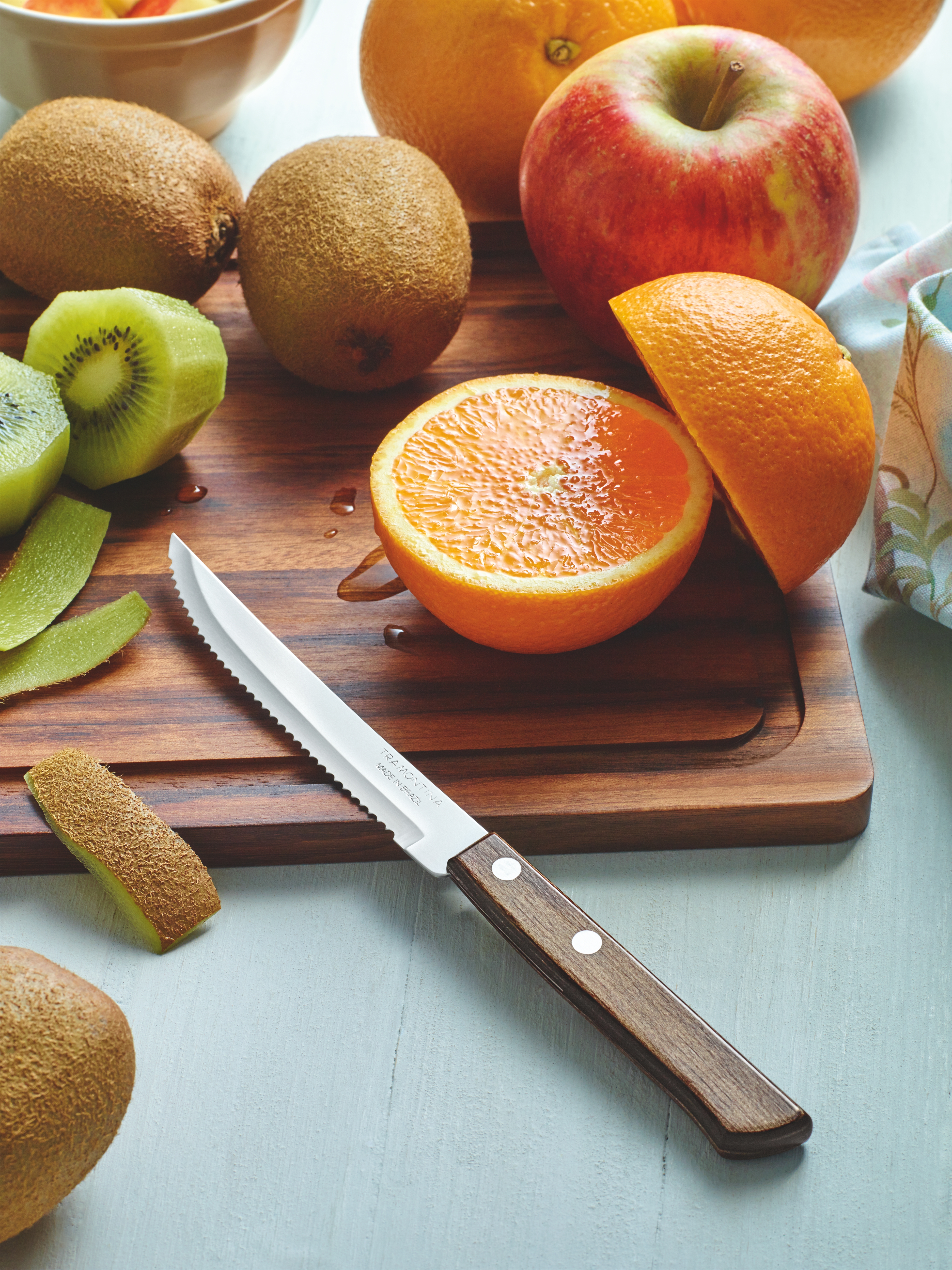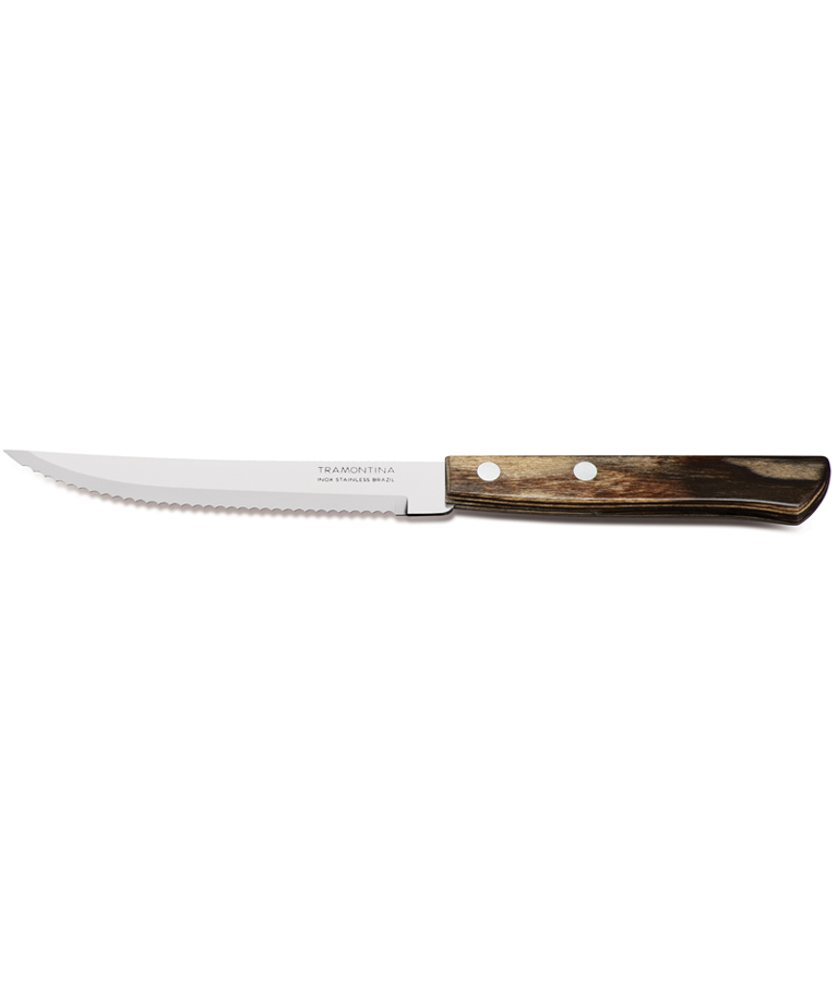 Cutit gama POLYWOOD, lama din inox de foarte buna calitate, isi mentine stralucirea dupa o utilizare indelungata, lungime lama 127mm, maner din lemn tratat, textura fina, rezistent la temperaturi inalte si impact, se poate curata in masina de spalat vase, lungime totala 208 mm