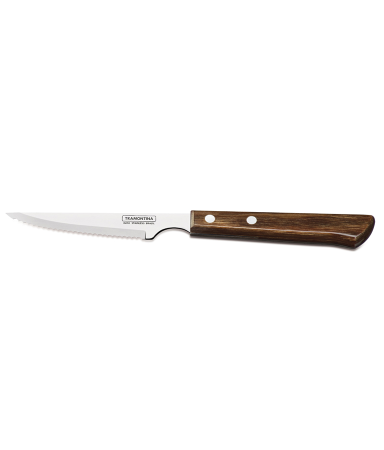 Cutit pentru friptura gama POLYWOOD, lama din inox de foarte buna calitate, isi mentine stralucirea dupa o utilizare indelungata, lungime lama 101mm, maner din lemn tratat, textura fina, rezistent la temperaturi inalte si impact, se poate curata in masina de spalat vase, lungime totala 229mm