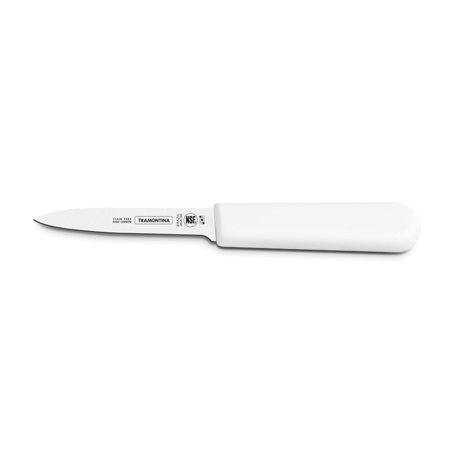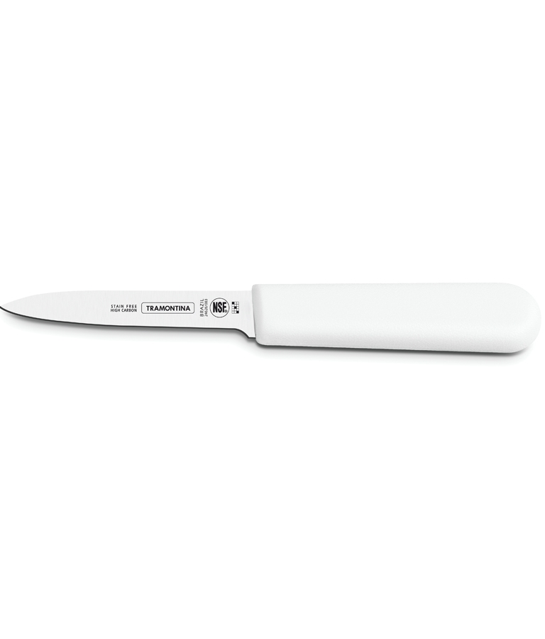 Cutit pentru legume, gama PROFISSIONAL MASTER, lama din inox de foarte buna calitate (DIN 1.4110) supus unui tratament termic special constand in calire, tratare sub 0ºC (congelare) si intarire, in vederea obtinerii unei duritati de peste 56 HRC, lungime lama 100 mm, maner culoare alba din polipropilena cu protectie antimicrobiana Microban®, produs cu certificare NSF U.S.A., lungime totala 200 mm