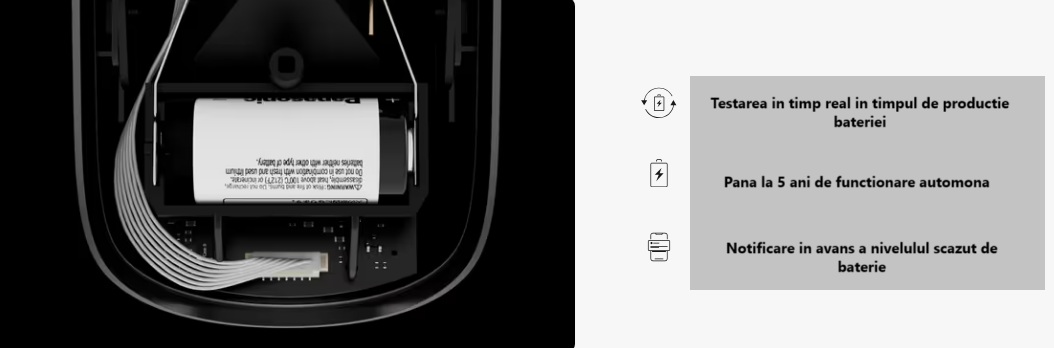 Dispozitivele Baseline funcționează fără cabluri, oferind flexibilitate maximă în timpul instalării. Bateria CR123A preinstalată de la producători dovediți asigură o instalare fără probleme, nefiind necesari pași suplimentari pentru a începe să utilizați dispozitivele. În plus față de testarea în timp real în timpul producției bateriei, Ajax Systems inspectează fiecare unitate pentru a asigura acuratețea caracteristicilor bateriei. Bateria este ușor de înlocuit, permițând înlocuirea acesteia după aproximativ cinci ani de funcționare autonomă. Starea bateriei este întotdeauna accesibilă prin intermediul aplicației Ajax. Utilizatorii și companiile de securitate primesc avertismente privind nivelul scăzut al bateriei cu luni înainte, ceea ce permite înlocuirea la timp, fără grabă.