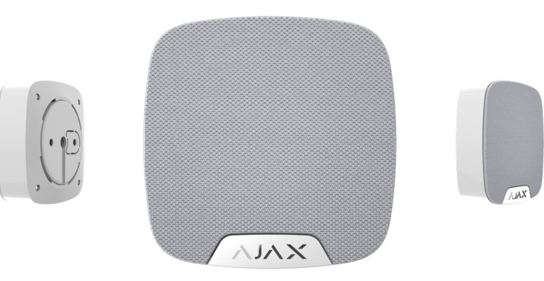 HomeSiren este un dispozitiv inteligent de interior care face mai mult decât să alerteze alarme. De asemenea, poate servi ca indicator de stare de securitate, poate notifica deschiderile de uși și poate afișa întârzierile la intrare sau ieșire și după alarmă. Dispozitivul funcționează autonom cu baterii preinstalate timp de până la 5 ani și folosește protocolul radio wireless Jeweler pentru a comunica cu un hub sau un range extender la o distanță de până la 2.000 m. HomeSiren este protejat la nivel hardware și software și ușor de controlat prin aplicațiile Ajax.