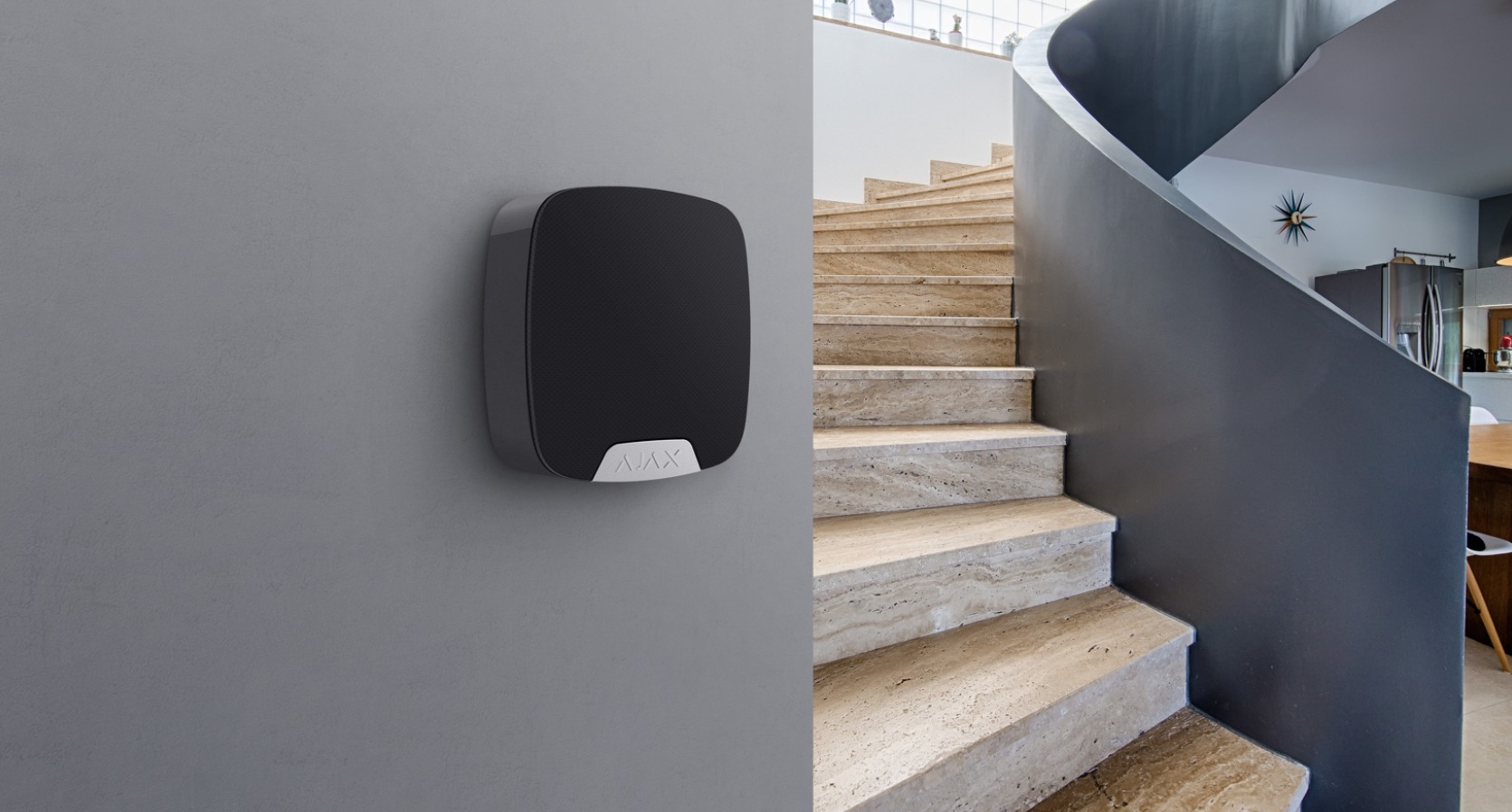 HomeSiren este un dispozitiv inteligent de interior care face mai mult decât să alerteze alarme. De asemenea, poate servi ca indicator de stare de securitate, poate notifica deschiderile de uși și poate afișa întârzierile la intrare sau ieșire și după alarmă. Dispozitivul funcționează autonom cu baterii preinstalate timp de până la 5 ani și folosește protocolul radio wireless Jeweler pentru a comunica cu un hub sau un range extender la o distanță de până la 2.000 m. HomeSiren este protejat la nivel hardware și software și ușor de controlat prin aplicațiile Ajax.