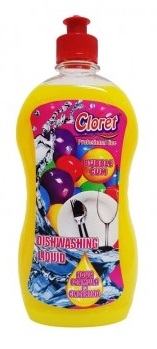 Cloret detergent pentru vase Bubble Gum 500 ml este formula profesionala ce poate fi utilizat atat in propria gospodarie, cat si in alte spatii precum restaurante, cantine, hoteluri, etc. Detergentul lichid pentru vase ofera vaselor si veselei dumneavoastra un parfum intens, noua formula cu glicerina ajuta la o curatare rapida si eficienta fara va afecta pielea mainilor. Cu detergentul lichid vasele raman stralucitoare si placut mirositoare pana la urmatoarea utilizare. Acest detergent lichid se poate utiliza indiferent de materialul din care sunt fabricate obiectele din bucatarie. Depozitarea corespunzatoare a acestui detergent pentru vase se recomanda a fi realizata in incaperi uscate, ferite de razele solare si de inghet, la temperaturi cuprinse intre 5 si 30 grade.