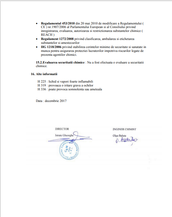 P 305 + P 351 : in caz de contact cu ochii, clatiti cu atentie cu apa timp de mai multe minute.