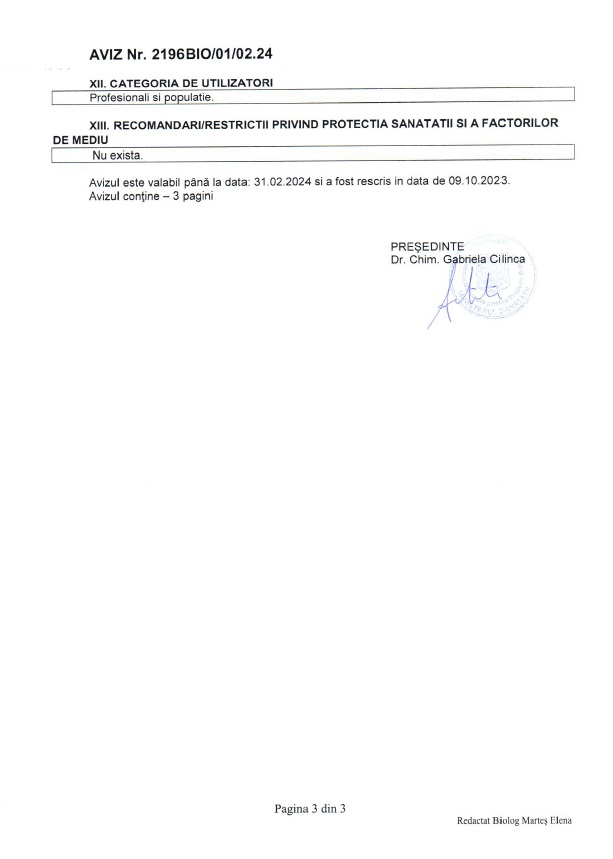 Produs fungicid si levuricid conform EN 1275 la 1 minut.