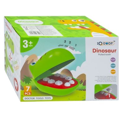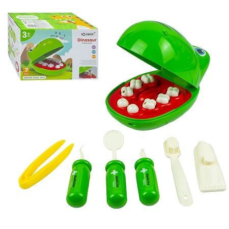 Dino cel poznas nu s-a spalat pe dinti si a ramas fara ei. Asa ca acum ii e rusine sa zambeasca. Doar tu poti sa il faci sa rada iar cu gura pana la urechi. Nu uita sa te speli pe dinti ca sa nu ajungi ca el Setul contine 7 piese 1 cap dinozaur pasta de dinti periuta de dinti clestisor 3 ustensile medicaleSpecificatii