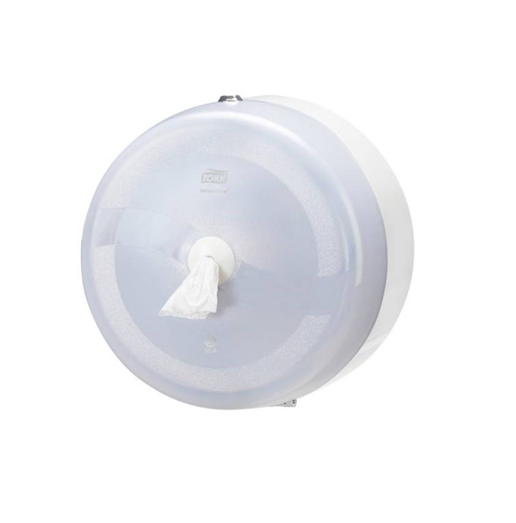 Dispenserul realizat din plastic translucid, cu rolă, este un sistem potrivit pentru toaletele cu trafic mare, inclusiv pentru mediile solicitante din punct de vedere al igienei.