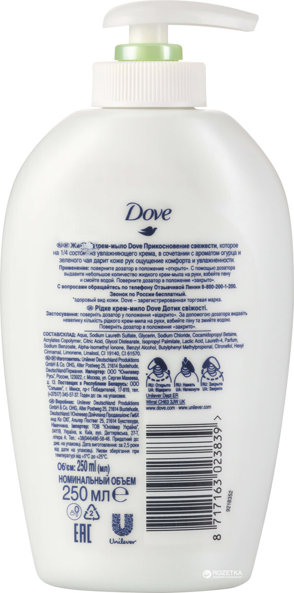 Dove Sapun lichid Fresh Touch, castravete si ceai verde, 250 ml