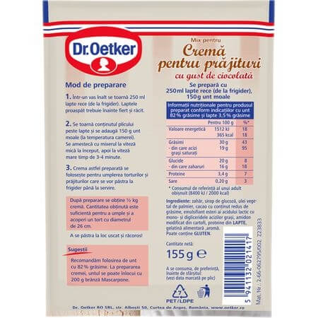 Dr. Oetker Mix pentru crema pentru prajituri cu gust de ciocolata, 155 g