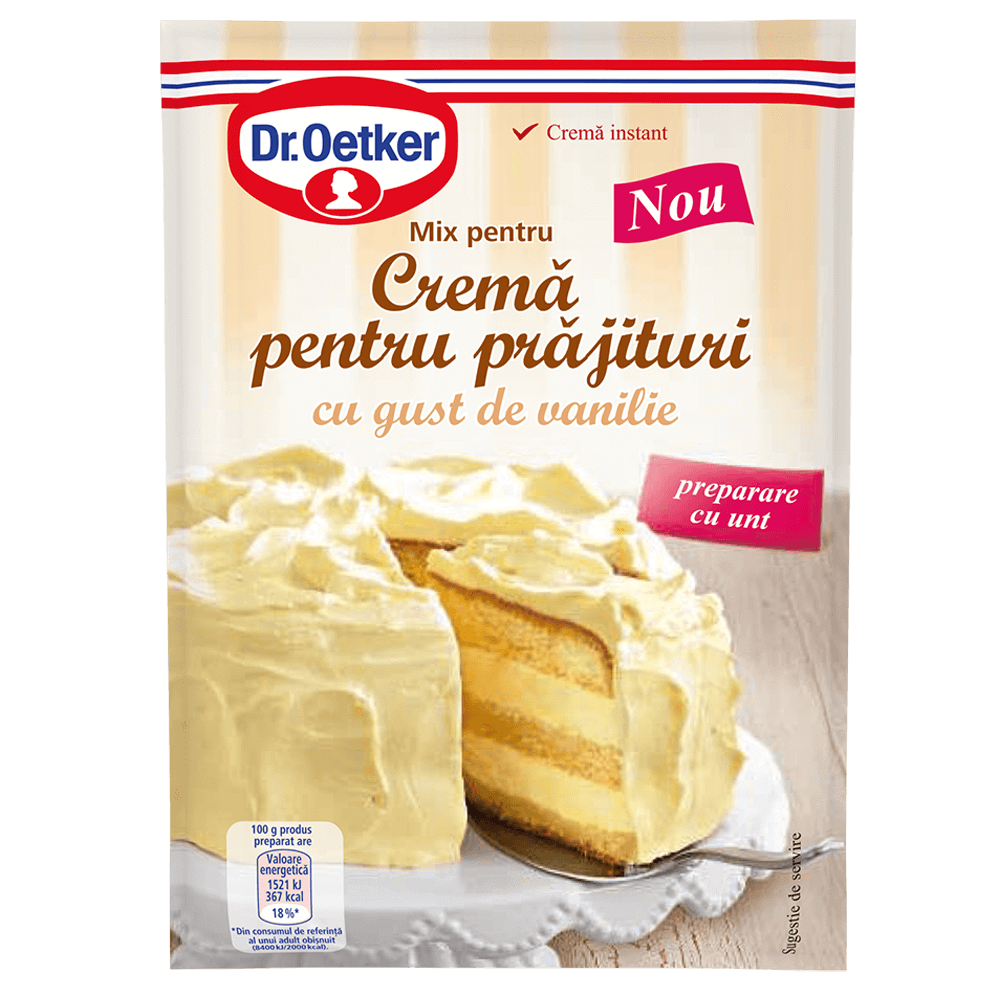 Dr Oetker crema prajitura cu aroma de vanilie preparare cu unt 140 g.