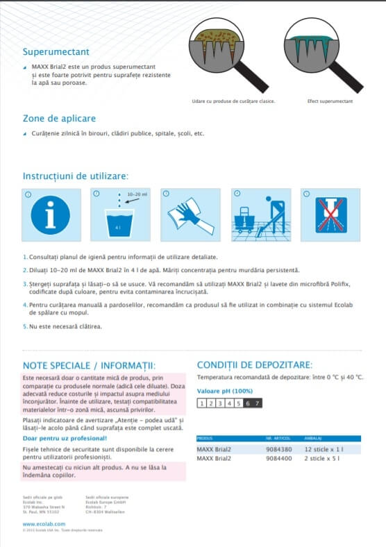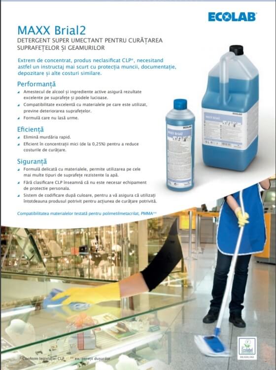 Ecolab MAXX2 Brial Detergent pentru curatare suprafete si geamuri, 1 L