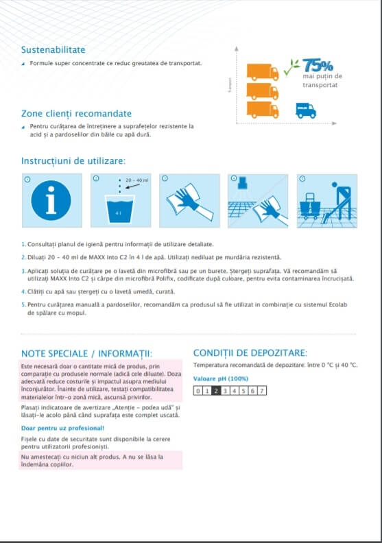 - Se dilueaza produsul astfel: 5 - 10ML/ 1L apa;