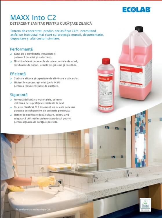 Ecolab MAXX2 INTO C Solutie pentru curatare suprafete baie, 1 L