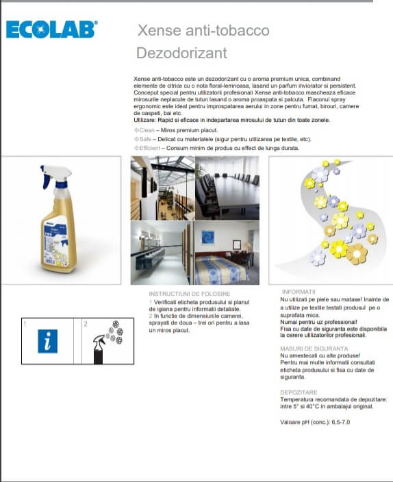 Ecolab Xense Anti-Tobacco Odorizant pentru camere si textile, 750ml