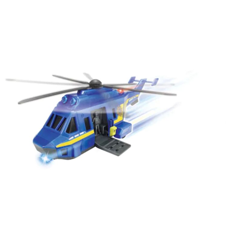 Elicopterul Special Forces de la Dickie Toys aduce o noua dimensiune distractiei din camera copiilor. Efecte luminoase si sonore sunt actionate de un senzor de miscare. Acest lucru face ca interventia politiei din aer sa fie deosebit de reala. Usa laterala se deschide, oferind acces la interiorul modelat cu atentie. Elicpterul are o lungime de 26 centimetri si este construit la o scara de 1 la 24.