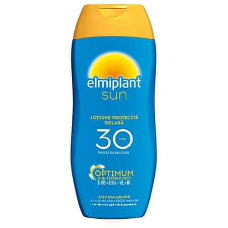Lotiunea solara Elmiplant SPF 30 este rezistenta la apa, oferind astfel protectie indelungata pe intreaga durata a expunerii la radiatiile solare, pentru o piele hidratata si protejata si un bronz ideal.