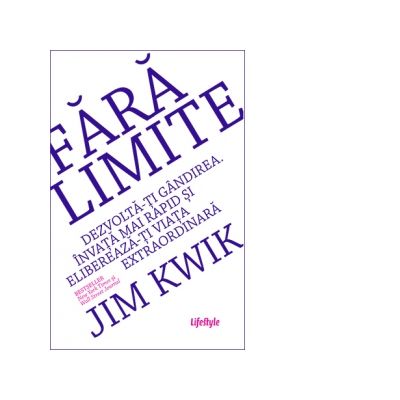 Jim Kwik, cel mai bine cotat antrenor al mintii, a scris un "manual al utilizatorului" pentru obtinerea formei mentale ideale. Fara limite prezinta tehnici de descatusare a superputerilor creierului, care ofera capacitatea de a face mai mult, prin modificarea modului de gandire, a motivatiei si a metodelor. De peste 25 de ani, Jim Kwik ajuta oameni de succes din diverse domenii sa-si elibereze adevaratul potential. In Fara limite, el dezvaluie practici bazate pe dovezi stiintifice si sugestii testate pentru accelerarea invatarii si imbunatatirea comunicarii, memoriei, concentrarii si a citirii rapide, rezultatele fiind rapide si vizibile.