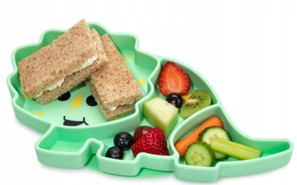 Farfurie compartimentata din silicon cu ventuza model dinozaur Melii