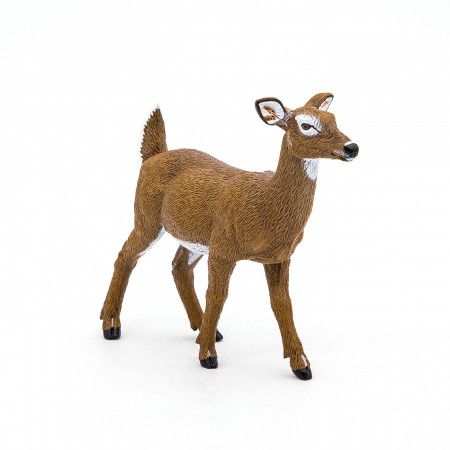 Vizitati cerbul cu coada alba maiestuoasa in inima padurilor explorati savana alaturi de puternicul tigru de Sumatra sau urcati pe varfuri acoperite de zapada pentru a cauta leopardul de zapada. Considerata ca un simbol national al vietii salbatice in Costa Rica si Honduras caprioara cu coada alba ca si cerbul este unul dintre cele mai comune mamifere din America. Ca adult poate masura pana la 1 m la greaban pentru o greutate de pana la 60 kg. Odata ce perioada de reproducere este incheiata gestatia femelei poate dura de la 205 pana la 216 zile care corespund la 7 luni. O femela poate avea 1 pana la 3 vitei fiecare cantarind intre 2 si 4 kg la nastere. Produsul are urmatoarele dimensiuni 10. 2 x 3 x 8. 3 cm si este recomandat copiilor cu varsta peste 3 ani. De mai bine de 20 de ani Papo inoveaza constant si ii face pe copii din intreaga lume sa viseze cu o gama bogata de peste 600 de produse reprezentand 12 lumi animale si personaje. De la modelul original la serie fiecare dintre figurinele Papo a fost conceputa si creata in Franta pentru a fi fabricata intr-o permanenta preocupare pentru calitate. Pictate manual atentia la detalii este acum recunoscuta. Figurinele Papo se disting prin acuratete si realism detaliile sunt de asa natura incat am putea crede ca se vor pune in miscare.Specificatii