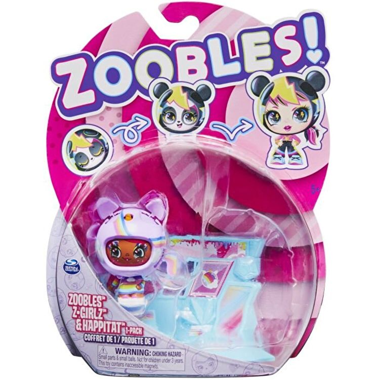 Fa cunostinta cu Zoobles Z-Girlz, cele mai bune prietene ale Zoobles Animals care pot fi dragute sau obraznice. Setul cu 1 Zoobles Z-Girlz si Happitat include o figurina moderna Zoobles Z-Girlz, un Happitat potrivit si o lista care te ajuta sa tii evidenta colectiei tale. Toate Zoobles Z-Girlz se transforma in doua etape, in mod uimitor. Fiecare Zoobles Z-Girlz este la inceput o bila colorata care se transforma intr-un animal foarte adorabil atunci cand o rostogolesti pe Happital-ul corespunzator. Pur si simplu rostogoleste bila peste punctul de metal de pe Happitat iar personajul tau Z-Girlz va lua nastere in mod magic, scotand la iveala Animalul Zoobles! Este foarte distractiv! Apoi apasa pe capul personajului pentru a-l transforma intr-o Zoobles Z-Girl foarte moderna! Este foarte distractiv! Fiecare papusica Zoobles Z-Girlz are modele si detalii in culori vibrante si fiecare are propriul stil si infatisare. Descopera personale precum Crystal Narwhal, Sparkelle, Kawaii Bunny cel stralucitor, Hoppy Heartz; Hip Hop Panda neon, Bam Bae si multi altii. Fundalul Happitat-ului Zoobles Z-Girlz este perfect pentru jocurile tale creative. Se asorteaza stilului papusii tale sau si este inspirat de activitatea ei preferata, precum noptile petrecute la prietenele ei acasa, coafatul, dansurile hip hop si multe altele! Pentru si mai multe moduri de a te juca, nicio Zoobles Z-Girl nu este fericita fara animalul ei Zoobles! Cauta prietena cea mai buna a personajului tau (fiecare vanduta separat) si imbina-le Happitat-urile pentru a crea un spatiu de joaca mare! Colectioneaza toate cele 12 Z-Girlz si 12 Animale Zoobles (fiecare vandute separat) pentru a-ti extinde minunata lume Zoobles! Figurinele de jucarie Zoobles sunt cadoul perfect pentru fetite cu varsta de peste 5 ani. Descopera Zoobles Z-Girlz si stilul lor unic in Setul de 1 Zoonles Z-Girlz si Happitat! In acest set este inclus personajul Z-Gilrz Fetita Unicorn.