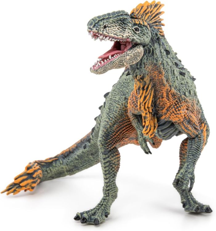 Cu dinozauri calcati pamantul jurasic intalniti legendarul T-Rex plimbati-va prin campii vaste cu velociraptorul sau zburati cu un pteranodon. Concavenator era un dinozaur de marime medie. Specimenul gasit in situl Las Hoyas avea 6 metri lungime. Specimenul prezinta o cocoasa pe spate formata de doua vertebre alungite probabil scopul cocoasei era termoreglator. Specimenul mai prezinta denivelari pe ulne care indica ca Concavenator avea pene. Produsul are urmatoarele dimensiuni 14 x 9 x 10 cm si este recomandat copiilor cu varsta peste 3 ani. De mai bine de 20 de ani Papo inoveaza constant si ii face pe copii din intreaga lume sa viseze cu o gama bogata de peste 600 de produse reprezentand 12 lumi animale si personaje. De la modelul original la serie fiecare dintre figurinele Papo a fost conceputa si creata in Franta pentru a fi fabricata intr-o permanenta preocupare pentru calitate. Pictate manual atentia la detalii este acum recunoscuta. Figurinele Papo se disting prin acuratete si realism detaliile sunt de asa natura incat am putea crede ca se vor pune in miscare.Specificatii