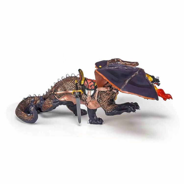 Cu figurinele lumii medievale traiesc batalii epice apara-ti regatul impotriva inamicului sau infrunta cavaleri intr-un duel. Dragonul intunericului patruleaza in fiecare noapte impreuna cu partenerul sau Dragonul de Razboi. Zboara peste regatul Papolandei cu calaretul sau cavalerul cu un triplu topor de lupta calauzindu-l catre orice potential inamic cu ajutorul viziunii sale de noapte. Produsul are urmatoarele dimensiuni 24 x 25 x 11 cm si este recomandat copiilor cu varsta peste 3 ani. De mai bine de 20 de ani Papo inoveaza constant si ii face pe copii din intreaga lume sa viseze cu o gama bogata de peste 600 de produse reprezentand 12 lumi animale si personaje. De la modelul original la serie fiecare dintre figurinele Papo a fost conceputa si creata in Franta pentru a fi fabricata intr-o permanenta preocupare pentru calitate. Pictate manual atentia la detalii este acum recunoscuta. Figurinele Papo se disting prin acuratete si realism detaliile sunt de asa natura incat am putea crede ca se vor pune in miscare.Specificatii