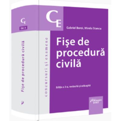 Despre carteFisele de procedura civila reprezinta un proiect editorial dedicat studentilor, masteranzilor si absolventilor care se pregatesc pentru examenele de admitere si definitivat in profesiile juridice, abordarea autorilor fiind axata, in special, pe prezentarea teoretica a institutiilor dreptului procesual civil, astfel cum acestea au fost configurate, respectiv reconfigurate prin noul Cod de procedura civila, intrat in vigoare in februarie 2013. Materia este analizata intr-un mod sistematizat si sintetic, fiind eliminate referintele la dezbateri teoretice sau probleme incidentale din practica, pentru a favoriza cursivitatea lecturii, astfel incat cel care va invata dupa aceasta carte sa deprinda mecanismele procedurii civile intr-o maniera cat mai structurata, logica si clara. Despre editia a 3-ao editie amplu revizuita si adaugita, in acord cu tematica concursurilor de admitere in profesiile juridice;46 de fise din toate materiile dreptului procesual civil, structurate intr-un format accesibil, usor de parcurs;toate fisele au fost actualizate in raport de modificarile legislative intervenite in ultimii 3 ani, dintre care le amintim pe cele aduse prin Legea nr. 140/2022, Legea nr. 173/2022, Legea nr. 192/2022, Legea nr. 199/2022, Legea nr. 336/2022, Legea nr. 57/2023, Legea nr. 303/2022, Legea nr. 304/2022, Legea nr. 139/2024, Legea nr. 214/2024, noul Regulament de ordine interioara al instantelor judecatoresti;contine trimiteri la jurisprudenta obligatorie relevanta in materia procedurii civile, respectiv deciziile Curtii Constitutionale si deciziile Inaltei Curti de Casatie si Justitie pronuntate in recursuri in interesul legii si cu privire la dezlegarea unor probleme de drept in materie civila;informatia din editia anterioara a fost revizuita, restructurata si imbogatita cu precizari si corelari cu alte institutii, exemple practice, spete si probleme noi din literatura de specialitate si practica judiciara. Despre seria Concursuri si exameneSeria Concursuri si examene grupeaza toate lucrarile de sinteze, fise, spete si grile publicate de Editura Hamangiu si este o serie special dedicata studentilor, in vederea pregatirii examenelor de an sau de licenta, si candidatilor la concursurile de admitere si definitivat in profesiile juridice. Cartile de fise sunt publicate in formatul academic obisnuit, adaptat grafic acestui concept, ce include multe tabele si scheme, facilitand vizualizarea si asimilarea rapida a informatiilor necesare promovarii examenelor. In ultimii ani, conceptul de fise s-a impus din ce in ce mai mult in fata tratatelor, cursurilor si monografiilor elaborate in materiile ce fac parte din tematica propusa pentru admiterea la Institutul National al Magistraturii, examenul de primire in profesia de avocat ori examenele de an, licenta ori definitivat (INM/INPPA). Cuprinsul acestor carti este conceput astfel incat cititorul sa dobandeasca o viziune clara si de ansamblu asupra materiei, care sa asigure fixarea rapida a cunostintelor necesare pentru promovarea diferitelor examene si concursuri. Informatiile sunt usor accesibile, structurate intr-o forma logica, actualizate din punct de vedere legislativ si completate cu deciziile obligatorii ale Curtii Constitutionale si ale Inaltei Curti de Casatie si Justitie.