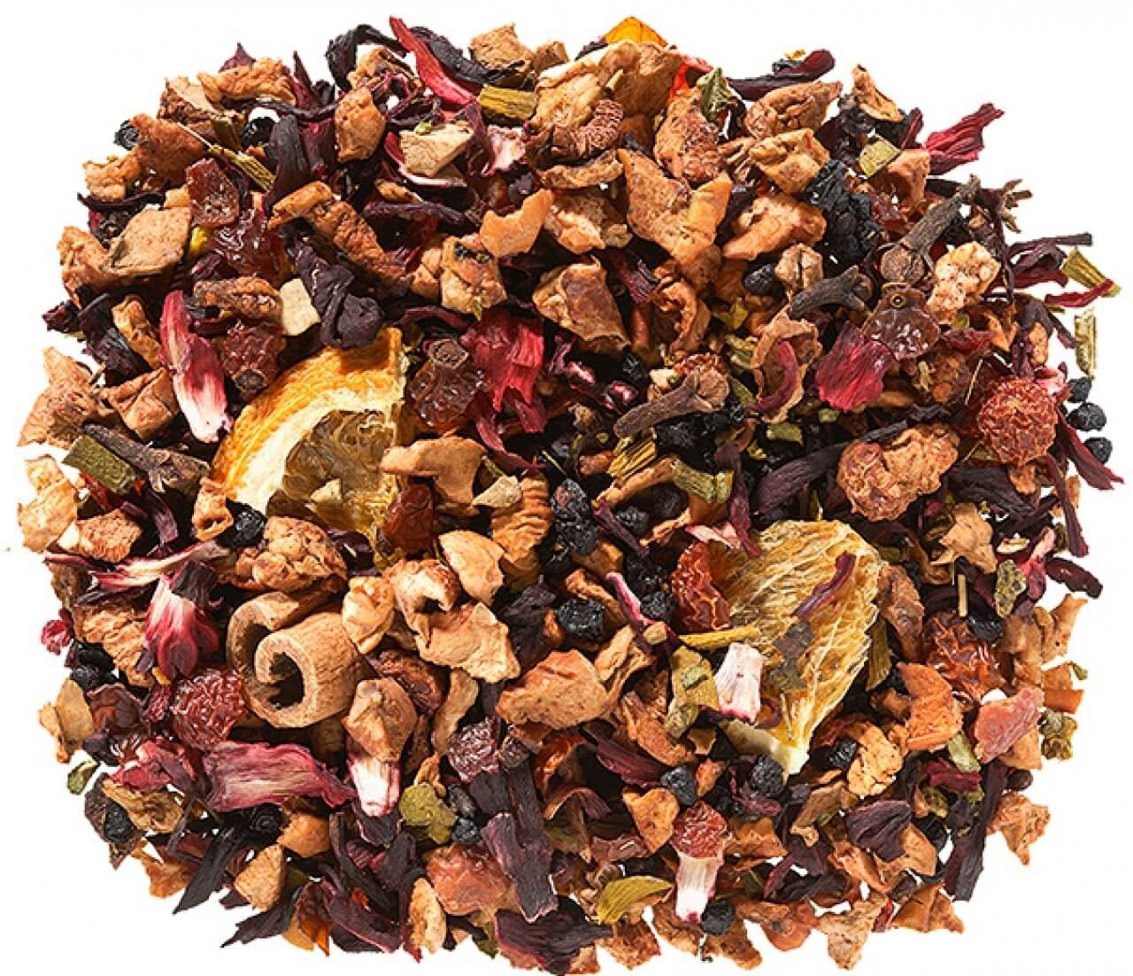 scortisoara bucati, cardamom seminte, ghimbir bucati, coji de portocala, cuisoare intregi, anason.