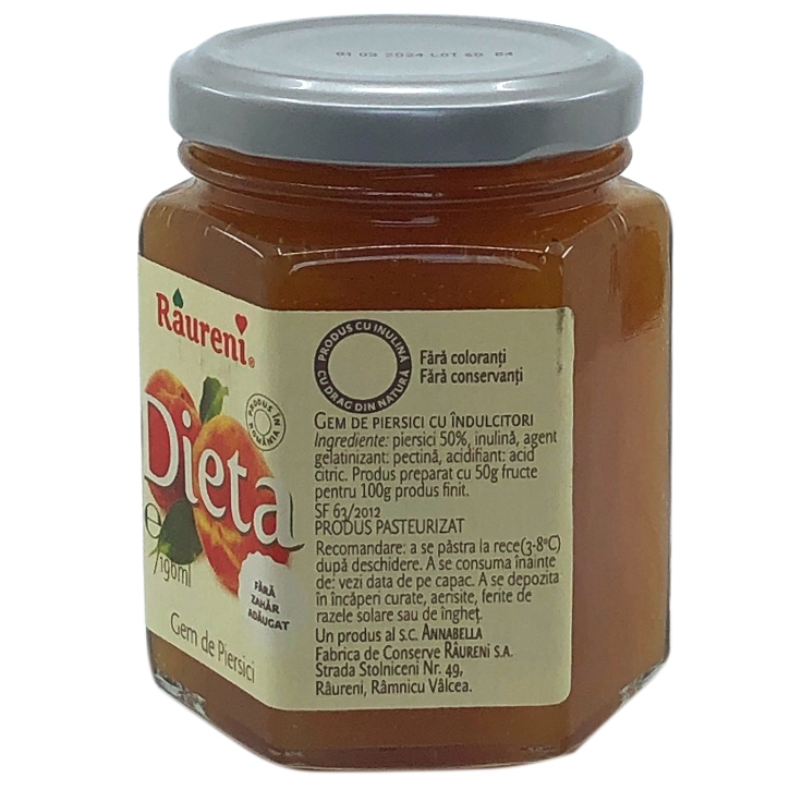 Ingrediente: Piersici, inulina, gelifiant: pectina, acidifiant: acid citric.