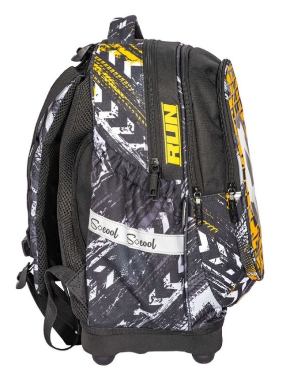 Ghiozdan anatomic FOOTBALL 38x39x19. 5 cm - S-COOL Acest model de ghiozdan conceput in mod special pentru clasele primare este un ghiozdan usor adaptat la anatomia spatelui cu un design modern si o compartimentare eficienta astfel cei mici vor beneficia de tot confortul si sustinerea necesara in aceasta noua etapa din viata lor.. Caracteristici - Ghiozdanul dispune de un compartiment principal spatios ce se inchide cu un fermoar din plastic cu doua cursoare metalice pentru o manipulare usoara. - De asemenea rucsacul are doua buzunare cel frontal fiind echipat cu organizator si suport pentru chei. Acestea au inchidere cu fermoar din plastic cu un cursor metalic. - Cele doua buzunare laterale pentru sticla sau umbrela au banda elastica la nivelul superior. - Bretelele intarite buretate ajustabile pot fi reglate cu usurinta in functie de inaltimea copilului si greutatea din interiorul ghiozdanului. Acestea au cusaturi triple. Bretele pot fi fixate cu catarama la nivelul abdomenului. - Manerul intarit este buretat pentru o transportare usoara. - Spatele anatomic buretat are la exterior plasa ce permite circularea aerului. - Cele trei benzi reflectorizante sunt dispuse pe buzunarele laterale si pe buzunarul frontal. - Fermoarele sunt realizate din plastic iar cursoarele sunt metalice. - Rucsacul este confectionat din poliester 600D cu prelucrare suplimentara din PVC. - Baza ghiozdanului solida este realizata din spuma EVA si are 4 picioruse din plastic. - Motiv FOOTBALL. - Ambalaj folie. Dimensiune ghiozdan 38x19 5x39 cm Dimensiune compartiment 31x16. 5x39 cm Dimensiune buzunar 28x64. 5x33 cm Dimensiune buzunar frontal 25x2x28. 5 cm Lungime bretele minim 35 cm maxim 77 cm Greutate 0. 7 kg Volum 24 L Varsta recomandata 6-11 aniSpecificatii