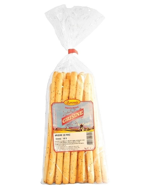 Ingrediente: făină albă de grâu,apă,grăsimi vegetale nehidrogenate,drojdie,semințe de mac (2%) ,sare iodată,făină de malț,zahăr,făină de soia,emulgatori (mono și digliceride ale acizilor grași),antioxidant (acid ascorbic).Produsul conține gluten și soia.