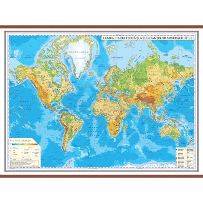 Harta fizica a lumii cu sipci 2000x1400 mm (GHL3F)