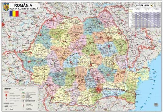 Harta Romania 120x160 cm fizico-geografica administrativa