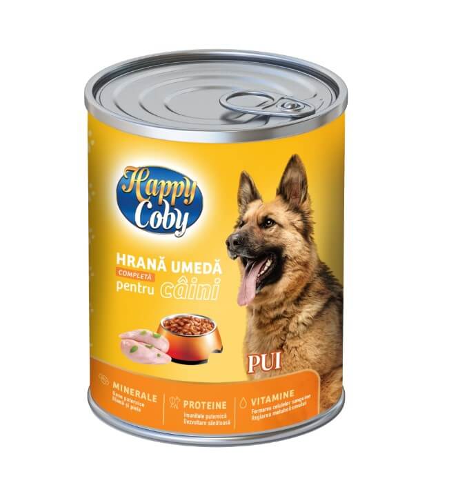 Hrana umeda pentru caini, gust de pui, 1240g Happy Coby