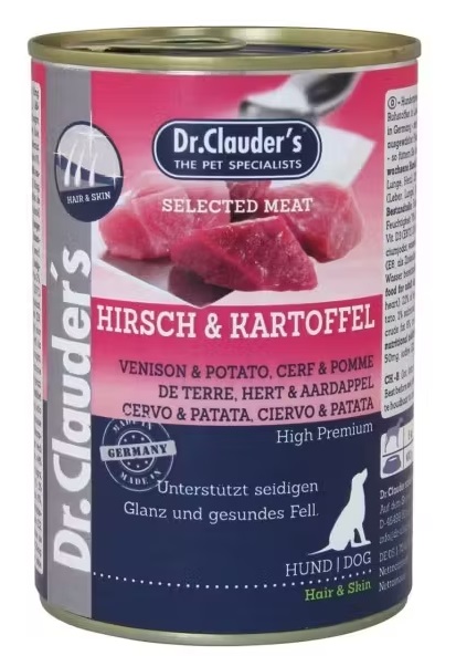 Hrana umeda, Caini, 400 g, cu Caprioara si cartof, Dr. Clauder`s Selected Meat