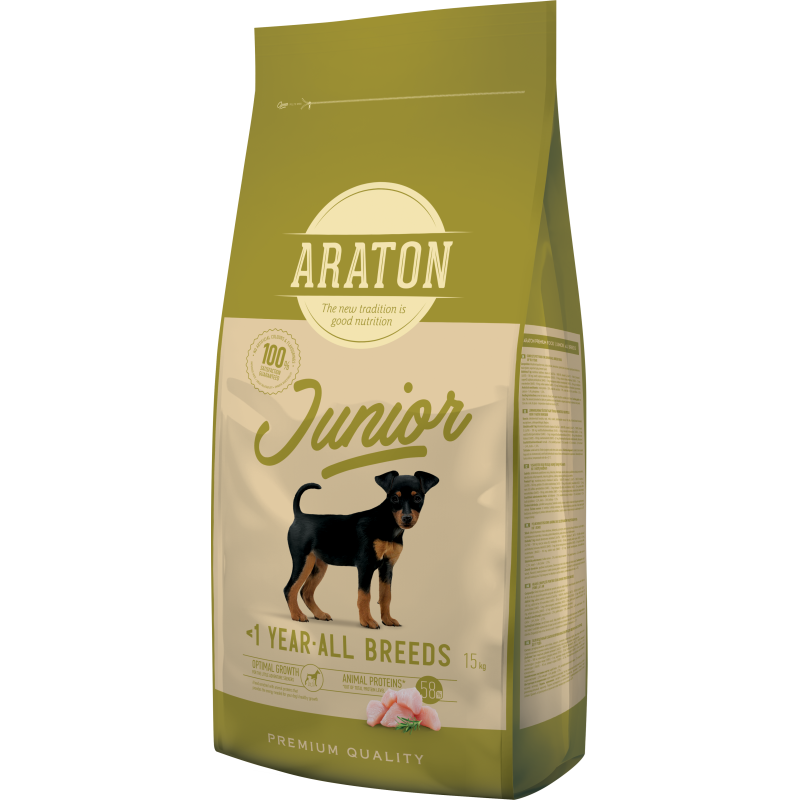 Hrana uscata pentru caini, cu pui, 15 kg, Araton Junior
