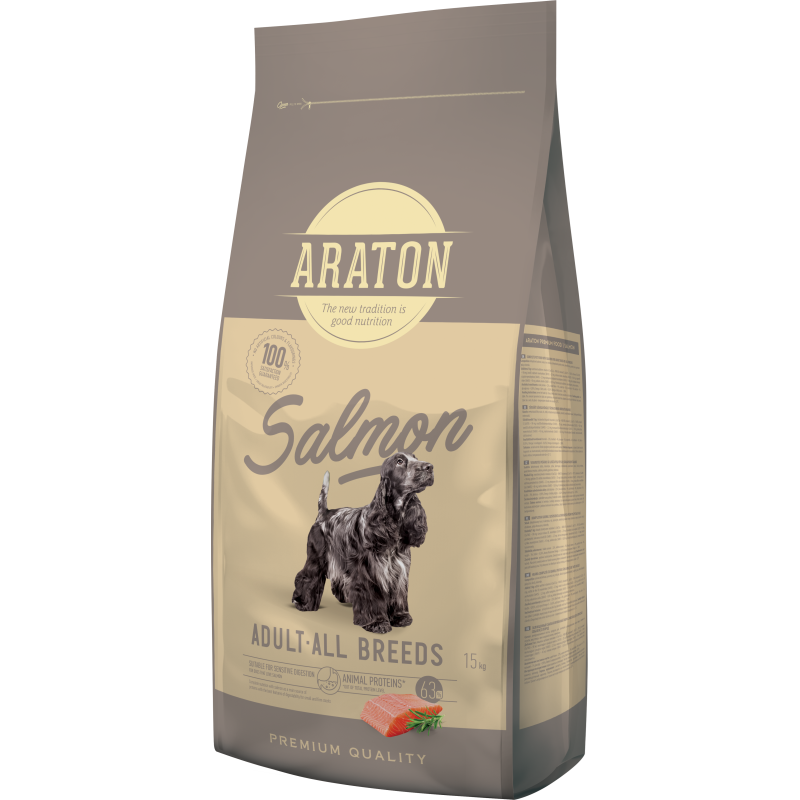 Hrana uscata pentru caini, cu somon si orez, 15 kg, Araton Adult