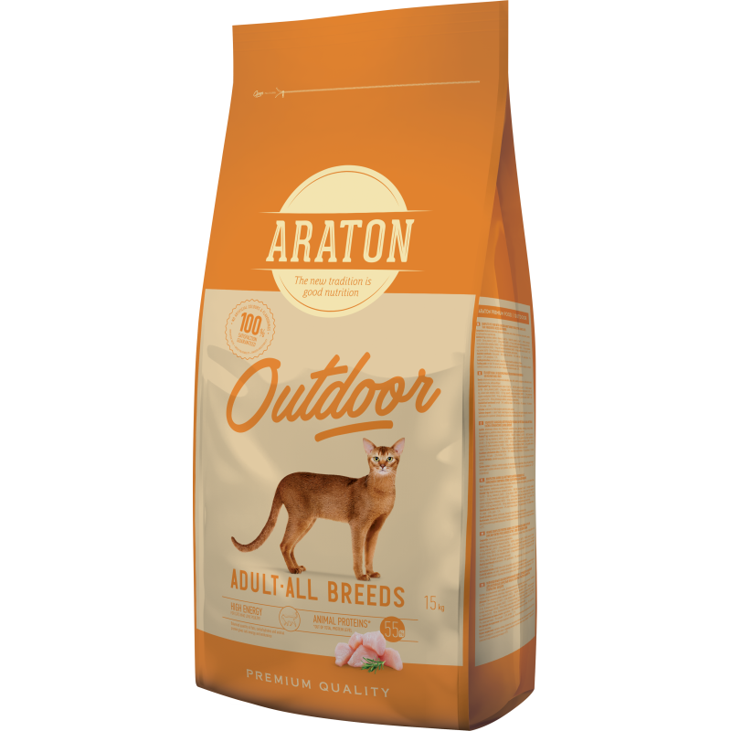 Hrana uscata pentru pisici, cu pui si curcan, 15 kg, Araton Adult Outdoor
