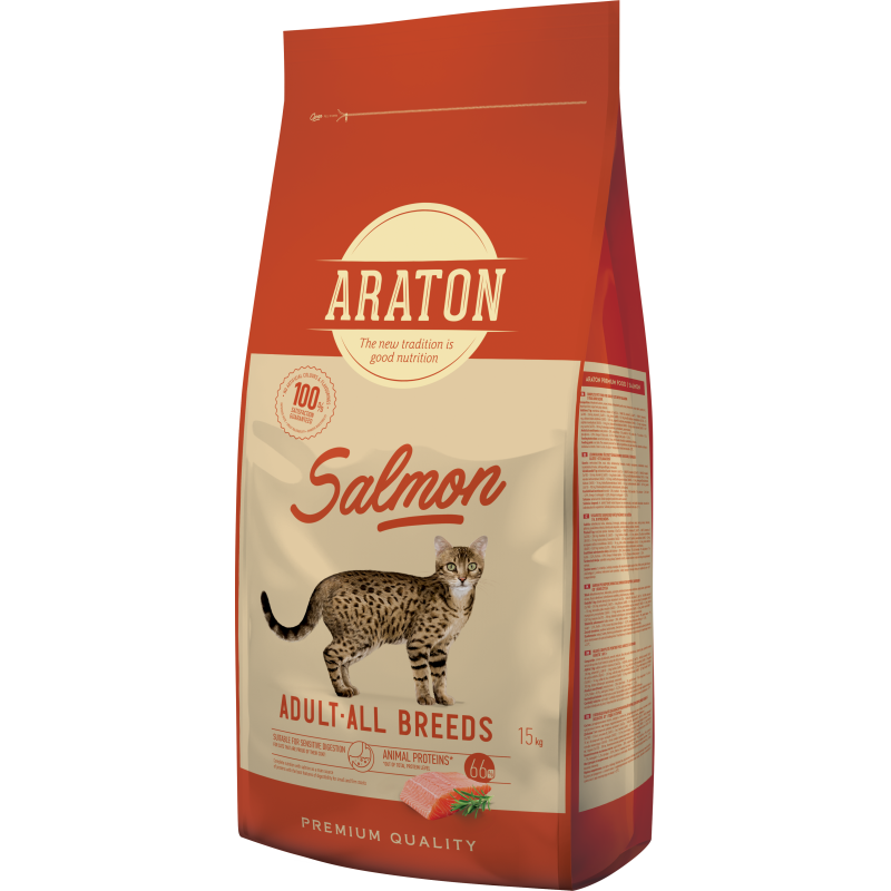 Hrana uscata pentru pisici, cu somon, 15 kg, Araton Adult