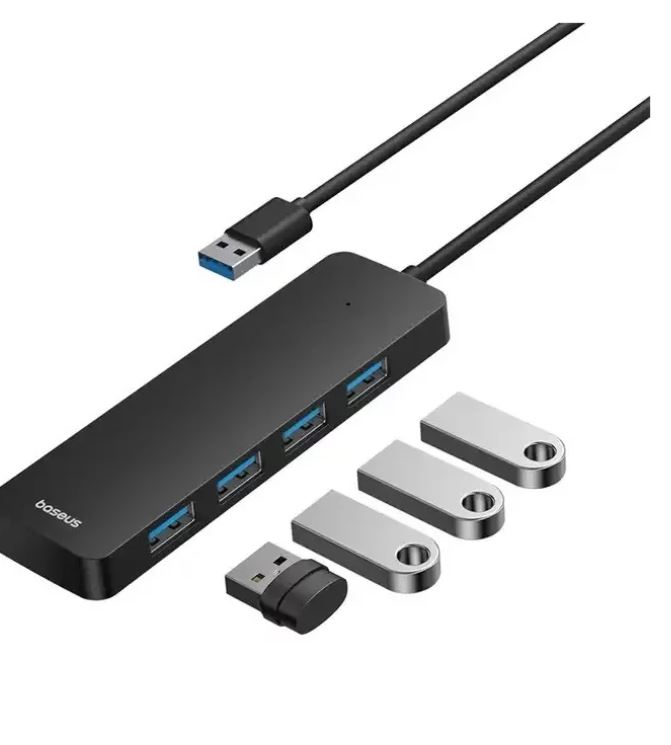 Hub Baseus UltraJoy 4-in-1 Lite, USB-A la 4xUSB-A 3.0, 5Gbps, Negru cu cablu de 15cm