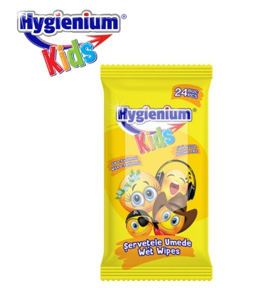 Hygienium Kids Servetele umede fara alcool Emoji, 24 buc