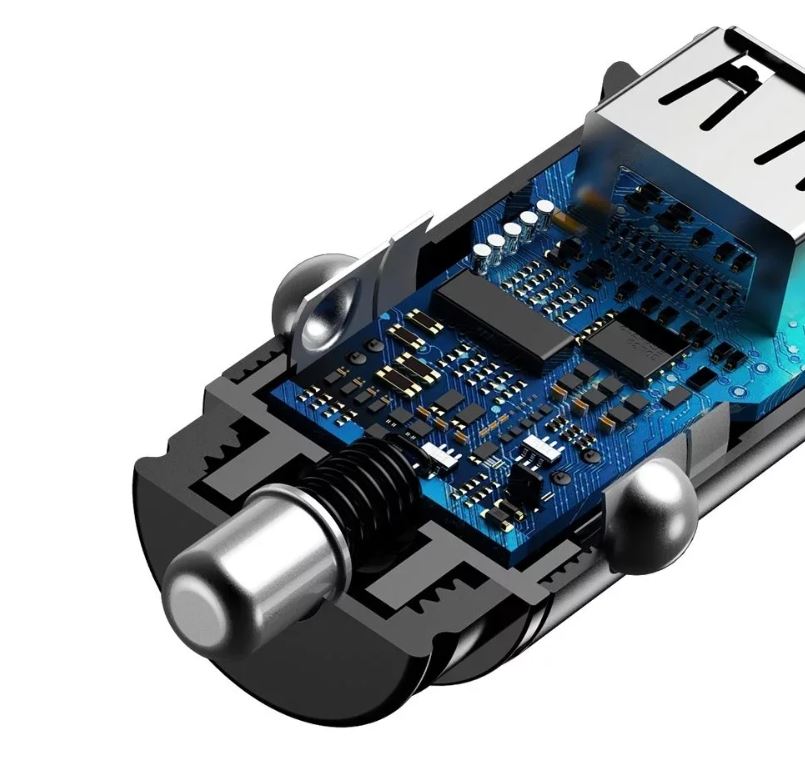 Incarcator auto Baseus Circular, 2x USB-A, Quick Charge 3.0, SPC AFC 30W, Negru