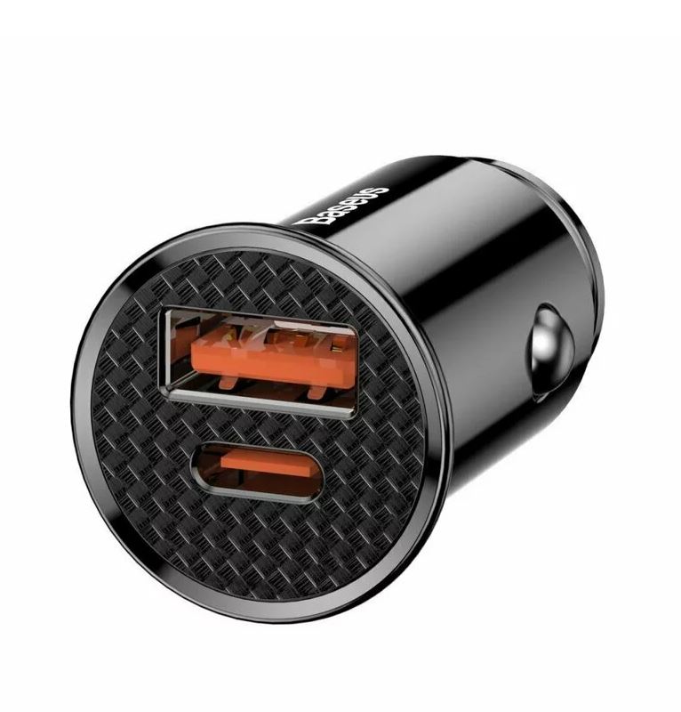 Incarcator auto Baseus Circular, 30W, 1xUSB, 1xUSB-C, 5A, Negru