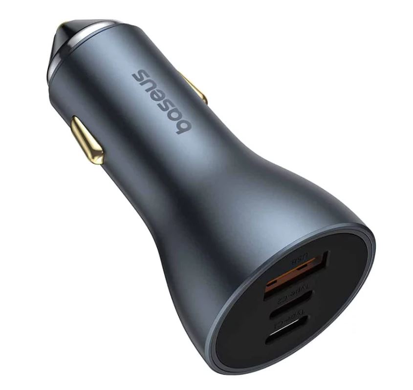 Incarcator auto Baseus Golden Contactor Pro, 65W, 1xUSB, 2xUSB-C, GaN, Gri